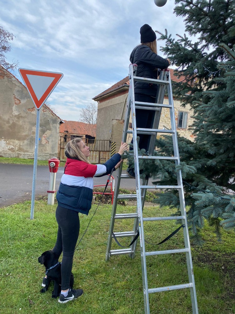 Místní hasiči SDH Spomyšl nám pomohli s ozdobením horního patra stromečku.