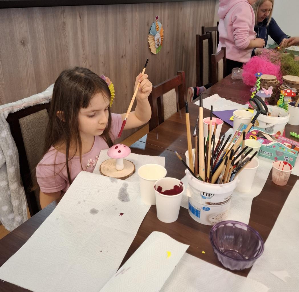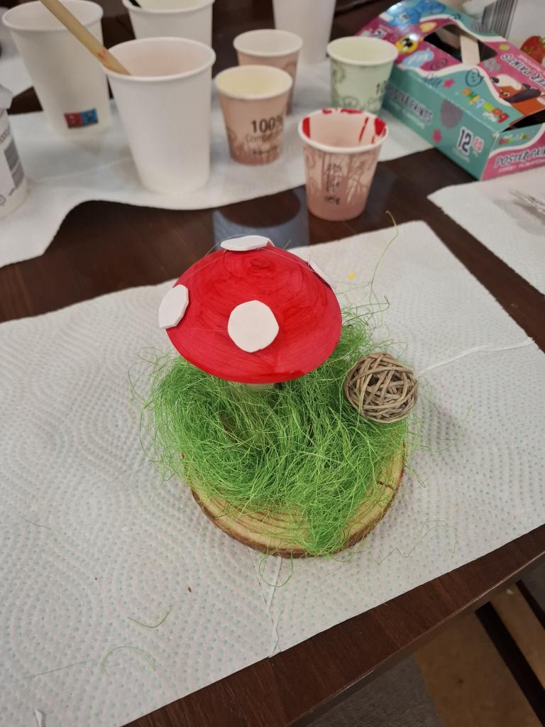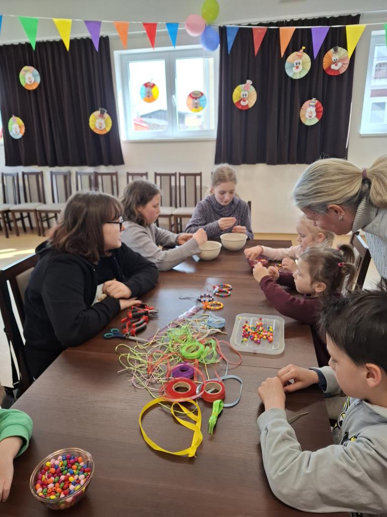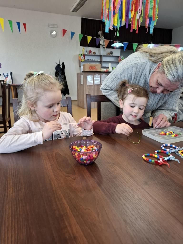 Děti si v rámci jarního tvoření vyrobily jarně-velikonoční dekorace z různých materiálů. Vznikali zajíčci z vajíček, korálkovè závěsné ozdoby a také jarní aranžmá s houbičkami a motýly.