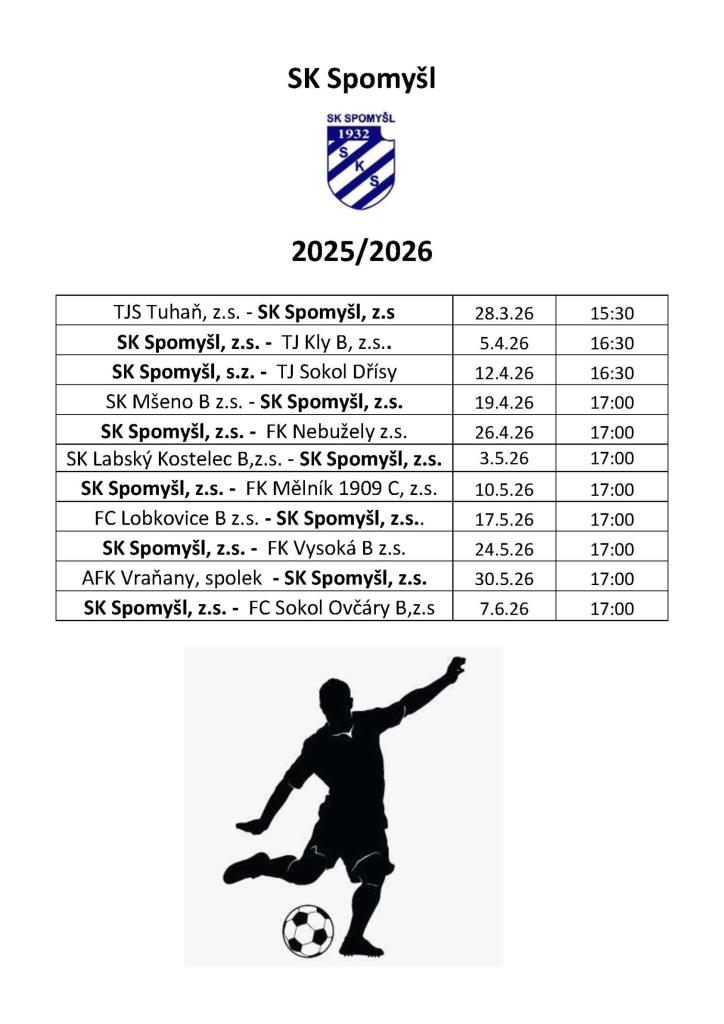 Rozpis fotbalových zápasů SK Spomyšl