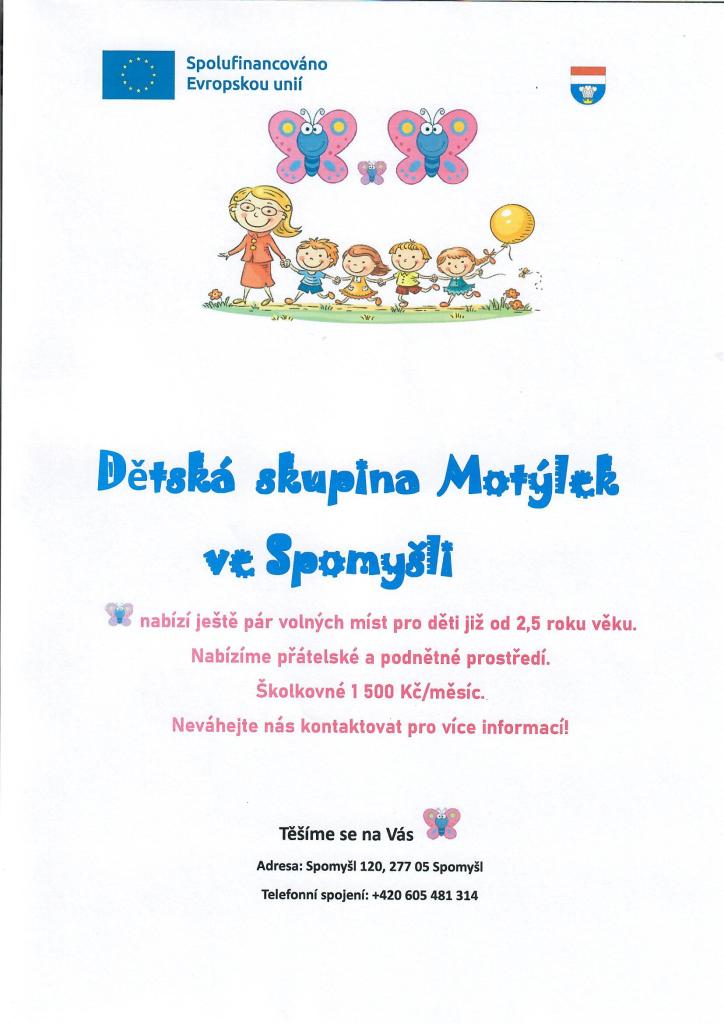 Volné místo v dětské skupině Motýlek